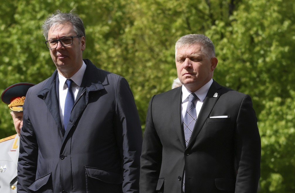 Aleksandar Vucic și Robert Fico, la Moscova. Credit foto: Grigory Sysoyev / AP / Profimedia