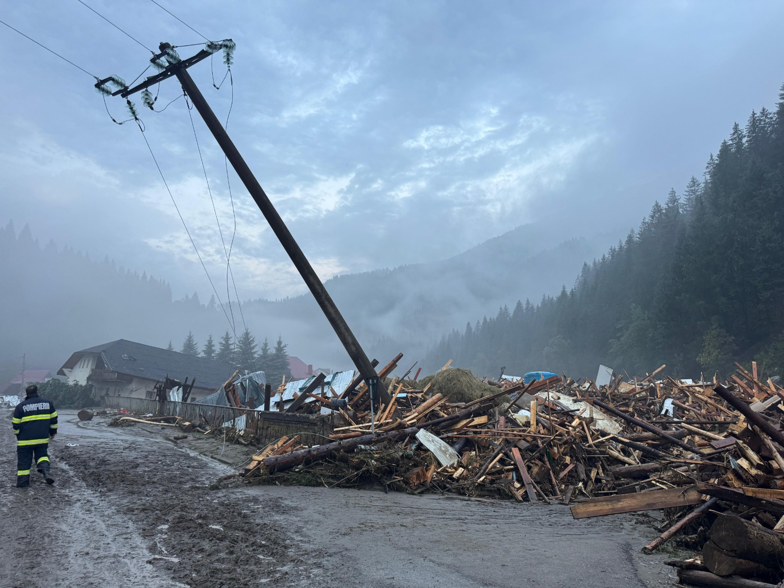 Efectele inundațiilor de la Broșteni/ Foto: Facebook – Departamentul pentru Situații de Urgență