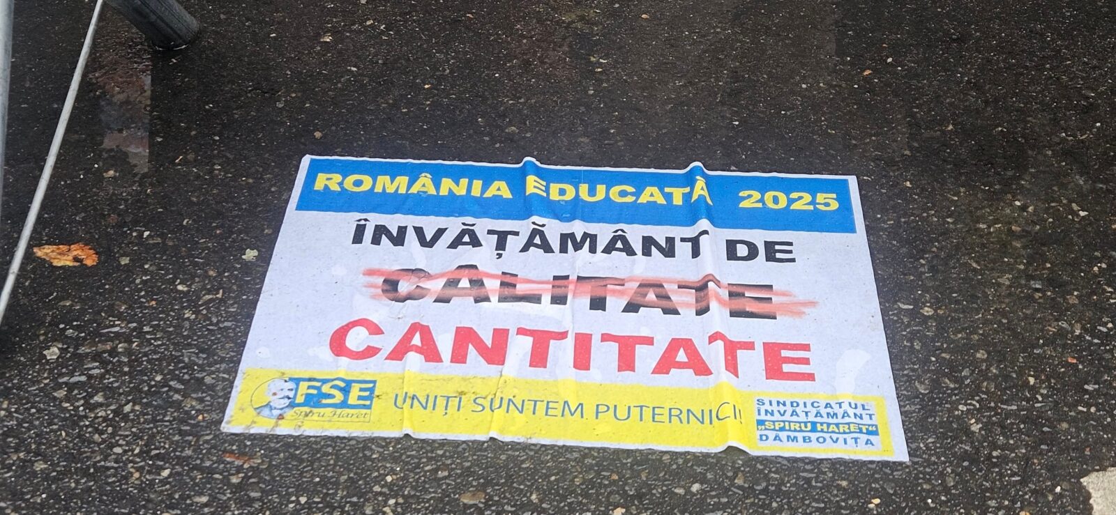 „Dați like si share la postare. Arătați că sunteți alături de cei peste 200 de colegi care astăzi protestează în ploaie”, i-a îndemnat FSE „Spiru Haret” pe urmăritorii săi de pe Facebook